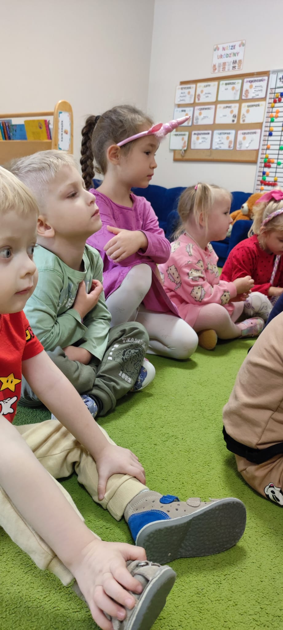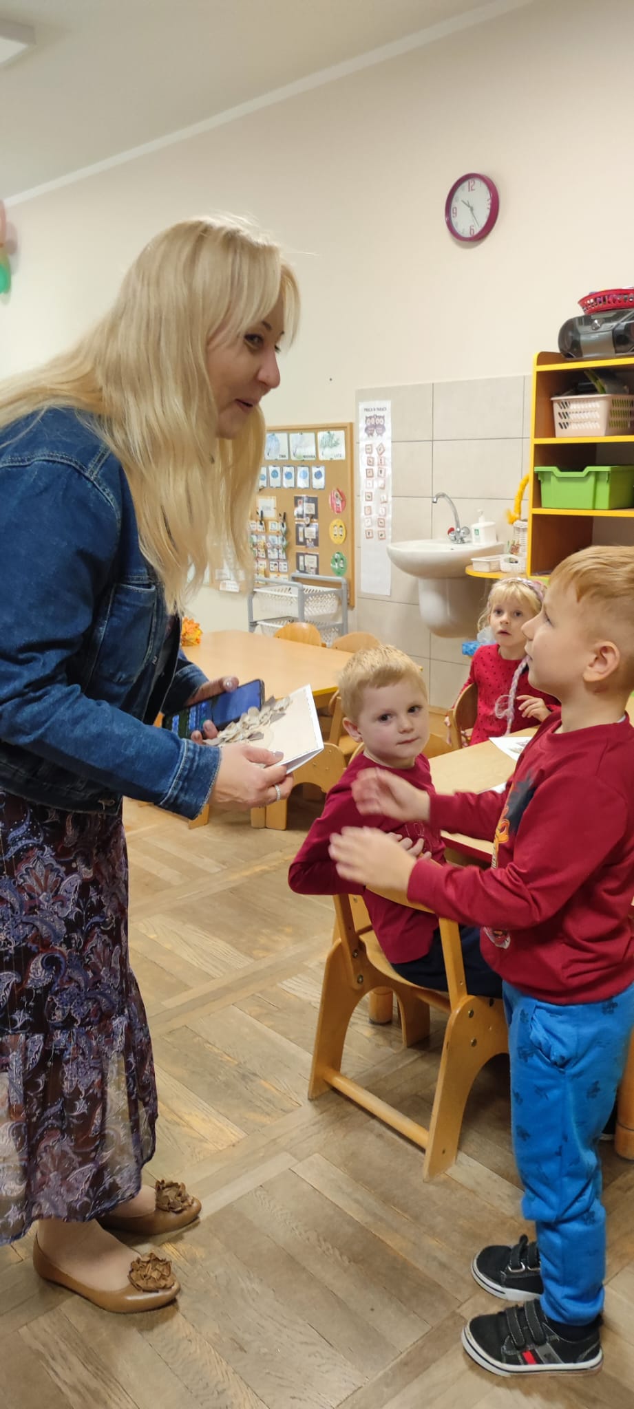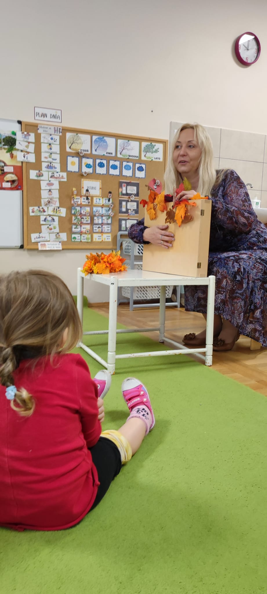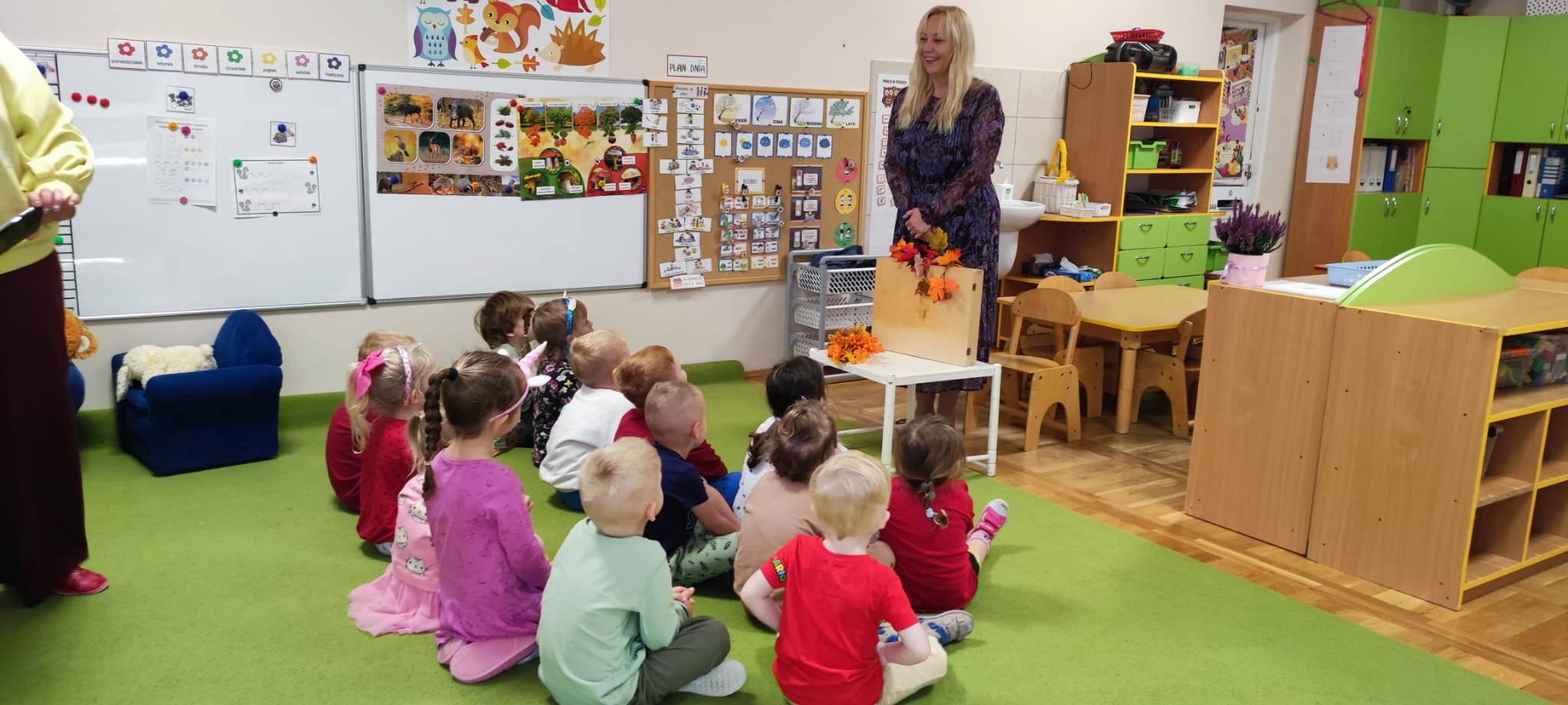 Dzisiaj gościliśmy Panią Wiolettę z Biblioteki Pedagogicznej, która w ramach zbliżającego się Ogólnopolskiego Dnia Głośnego Czytania zaprezentowała dzieciom teatrzyk kamishibai z opowieścią „Rok i jego cztery córki”. Barwna historia o zmieniających się porach roku zachwyciła przedszkolaki i przeniosła je w magiczny świat teatru obrazkowego.