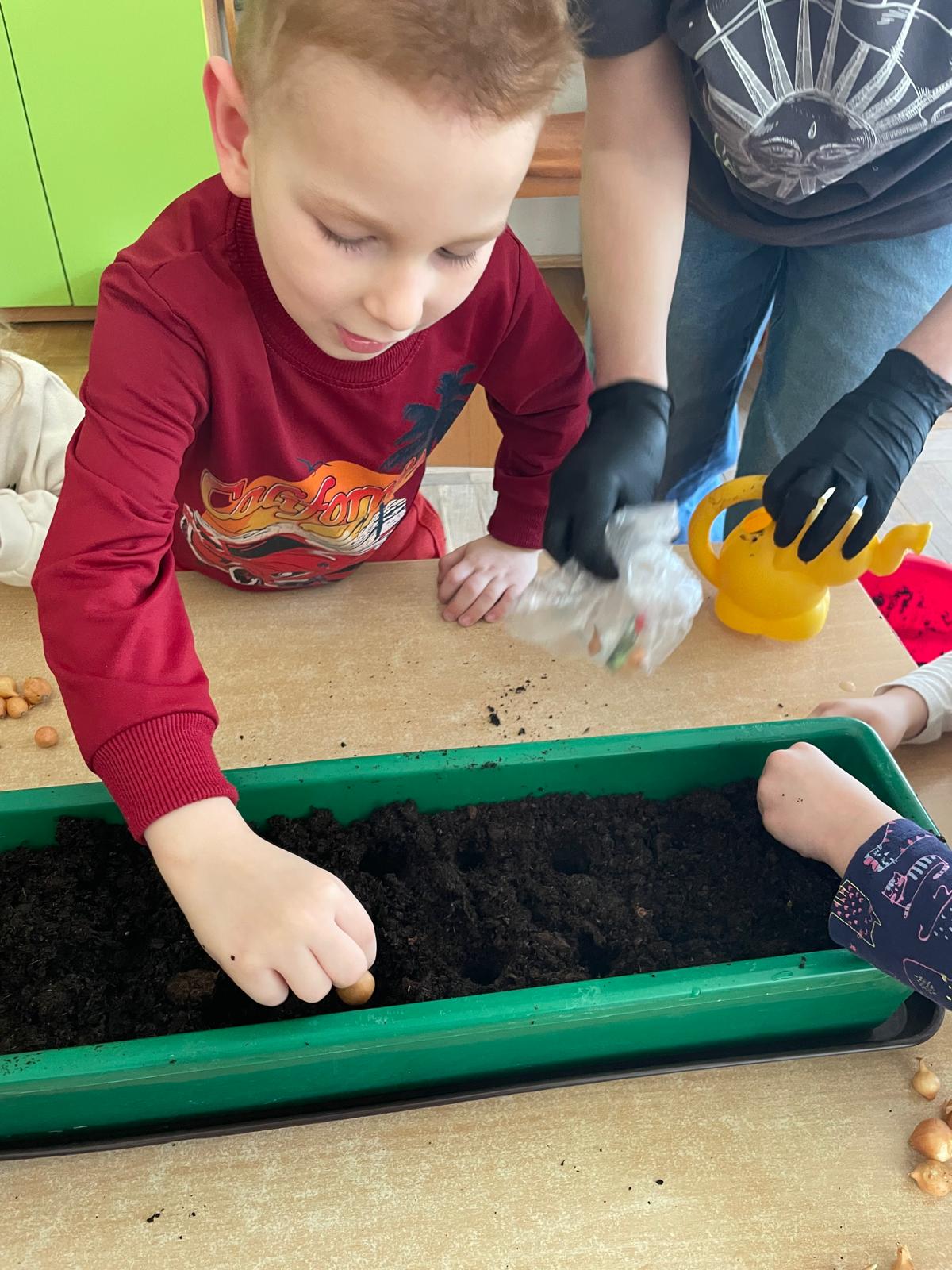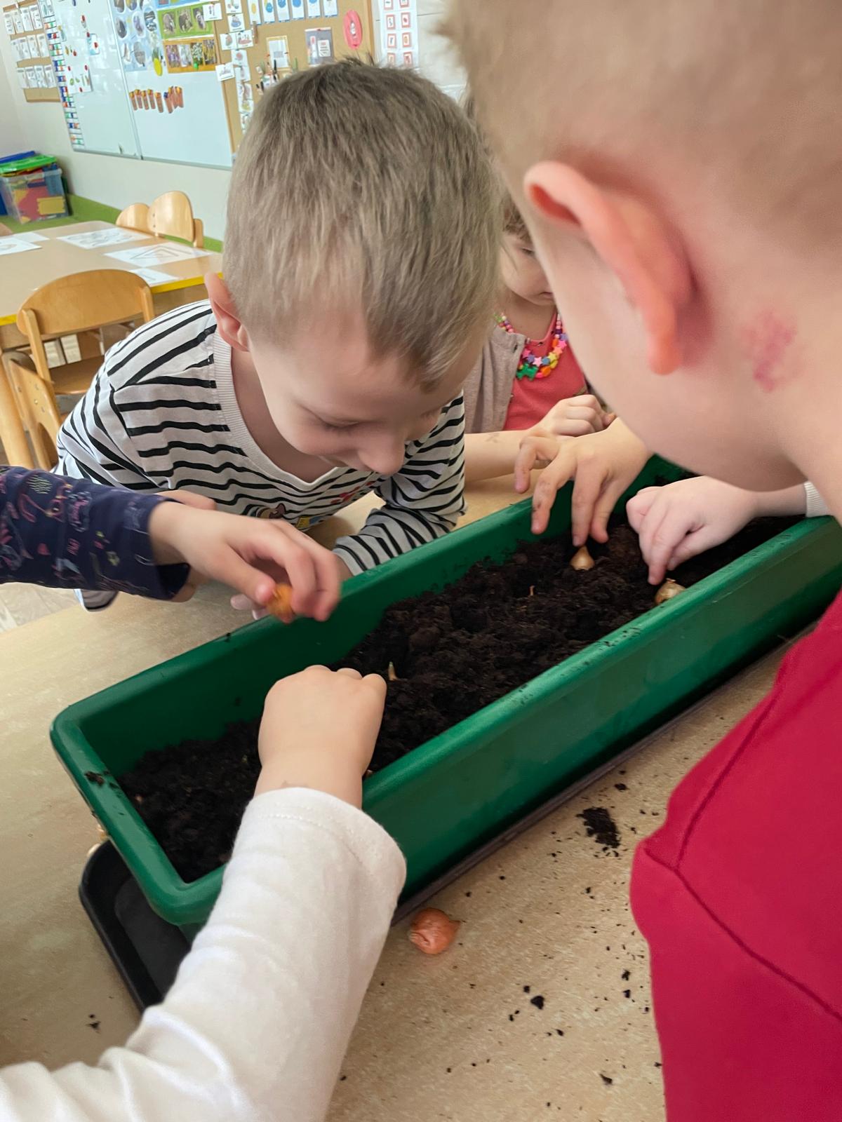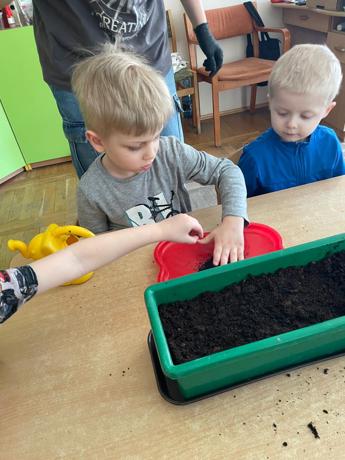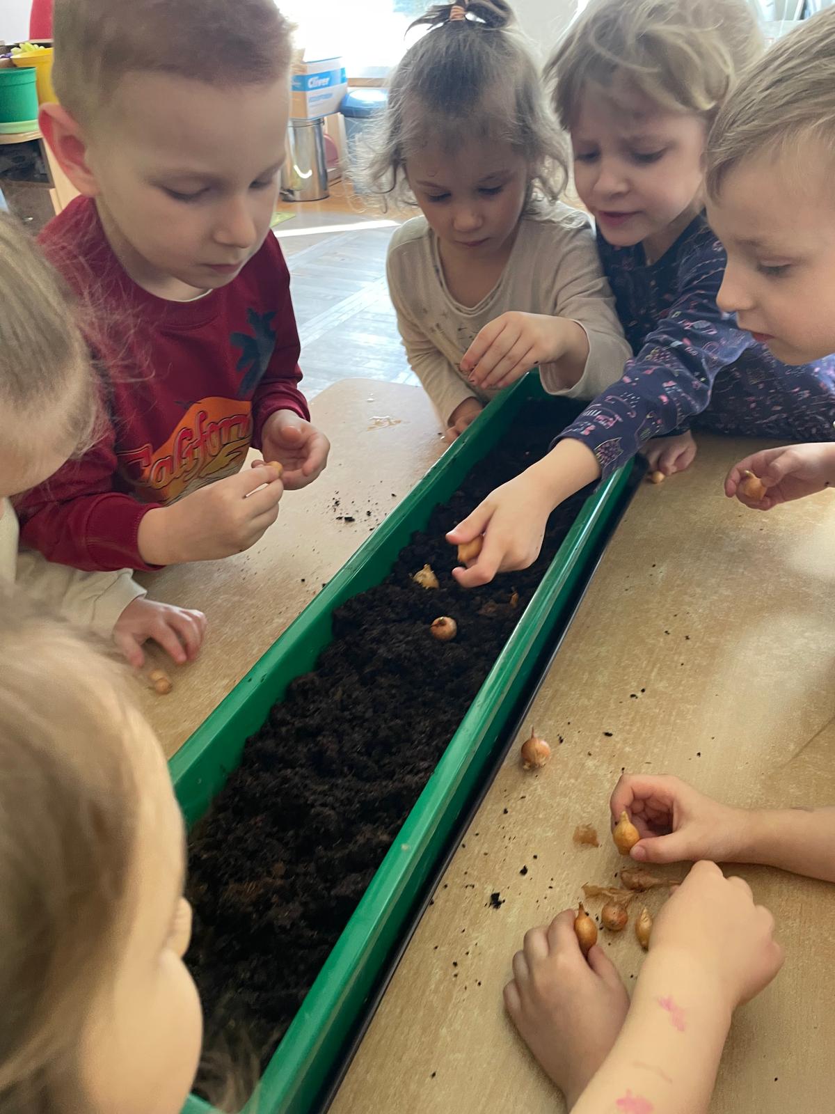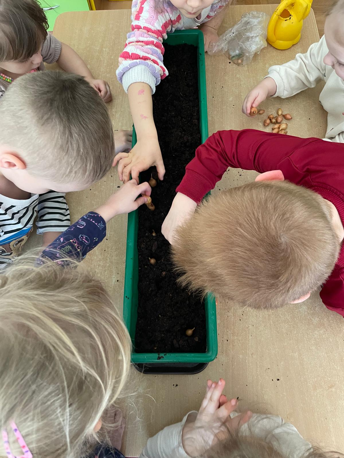 W naszej grupie „Sowy” postanowiliśmy stworzyć mały, wiosenny ogródek, który nie tylko ozdobi przestrzeń, ale i dostarczy nam zdrowych, świeżych produktów do codziennego spożycia. Wspólnie zasadziliśmy kiełki, szczypiorek oraz cebulkę, a do tego dodaliśmy kolorowe bratki, które wprowadziły do naszej sali mnóstwo uroku i radości.