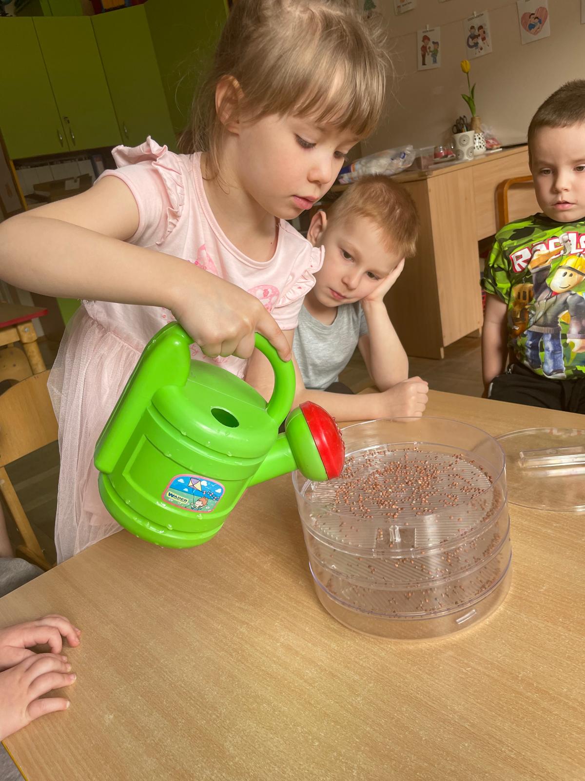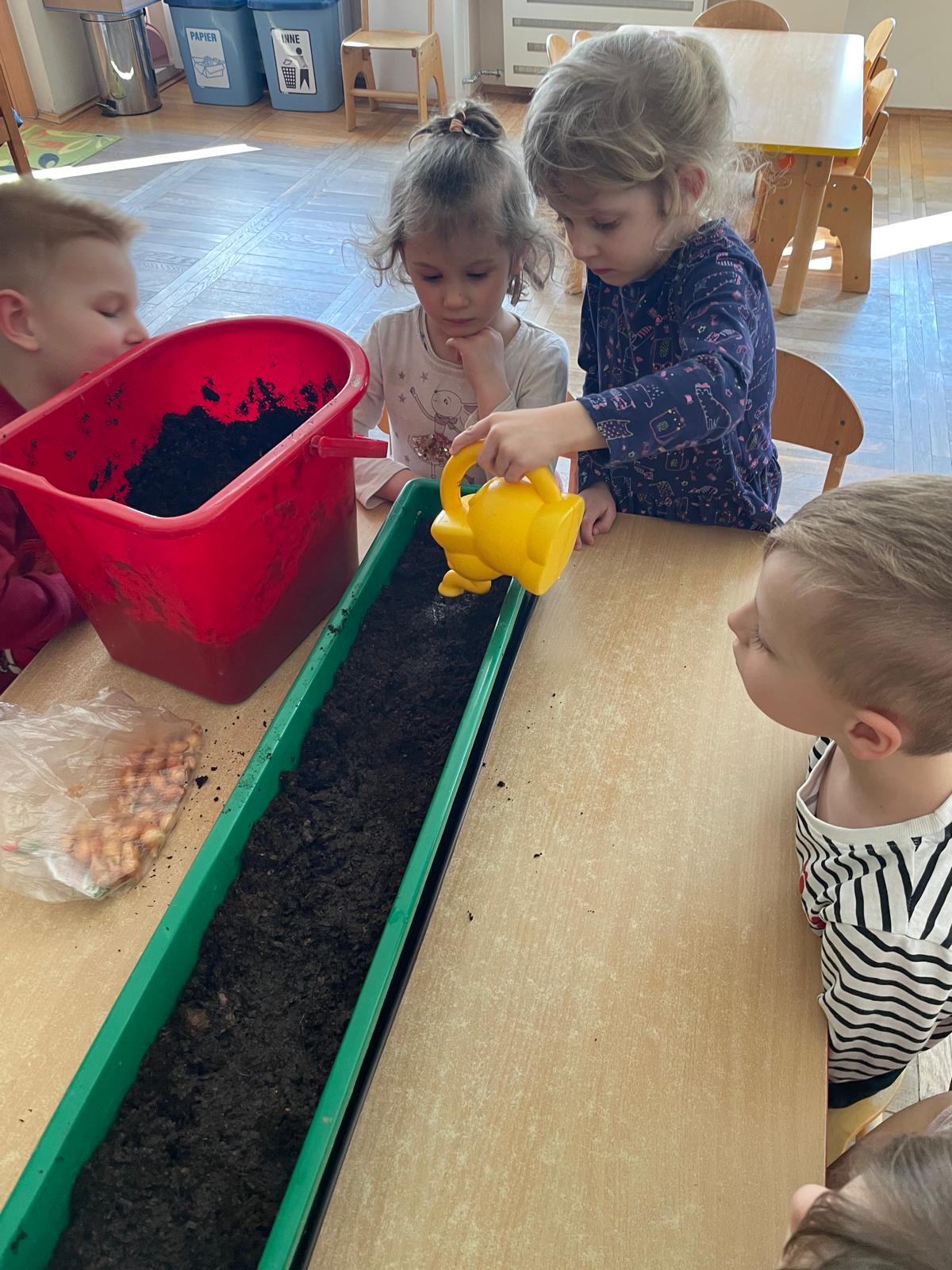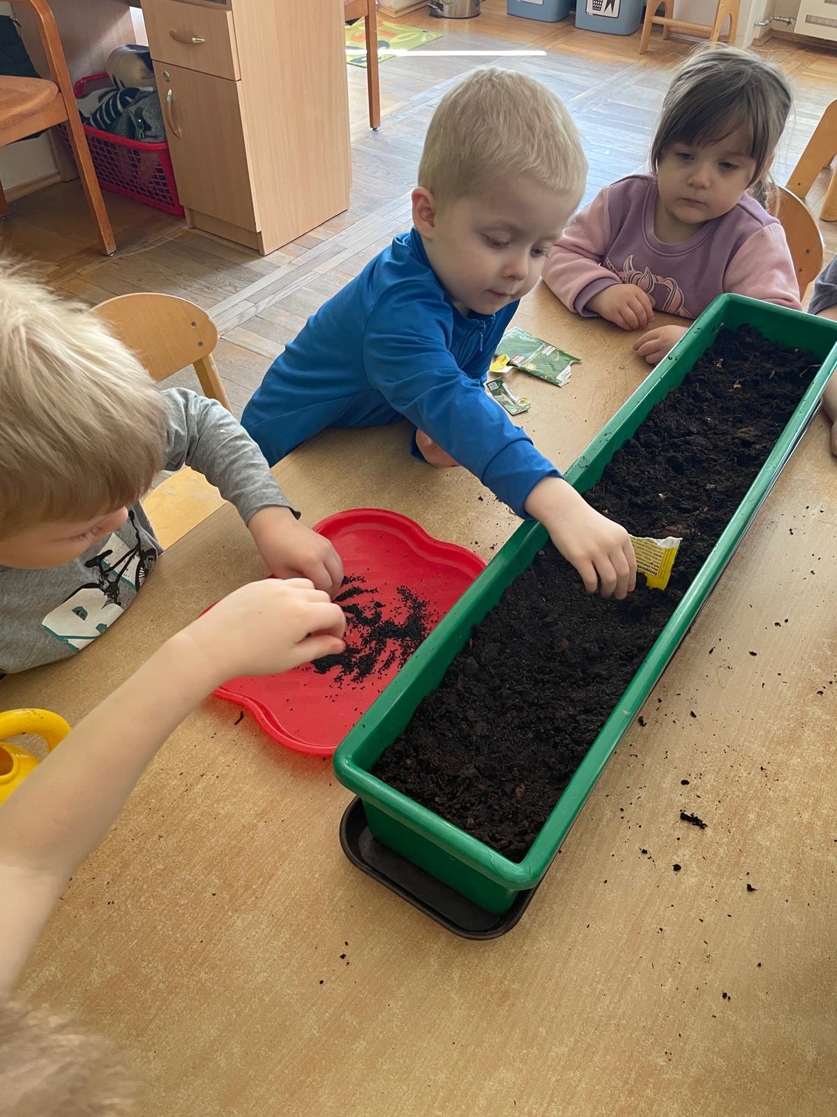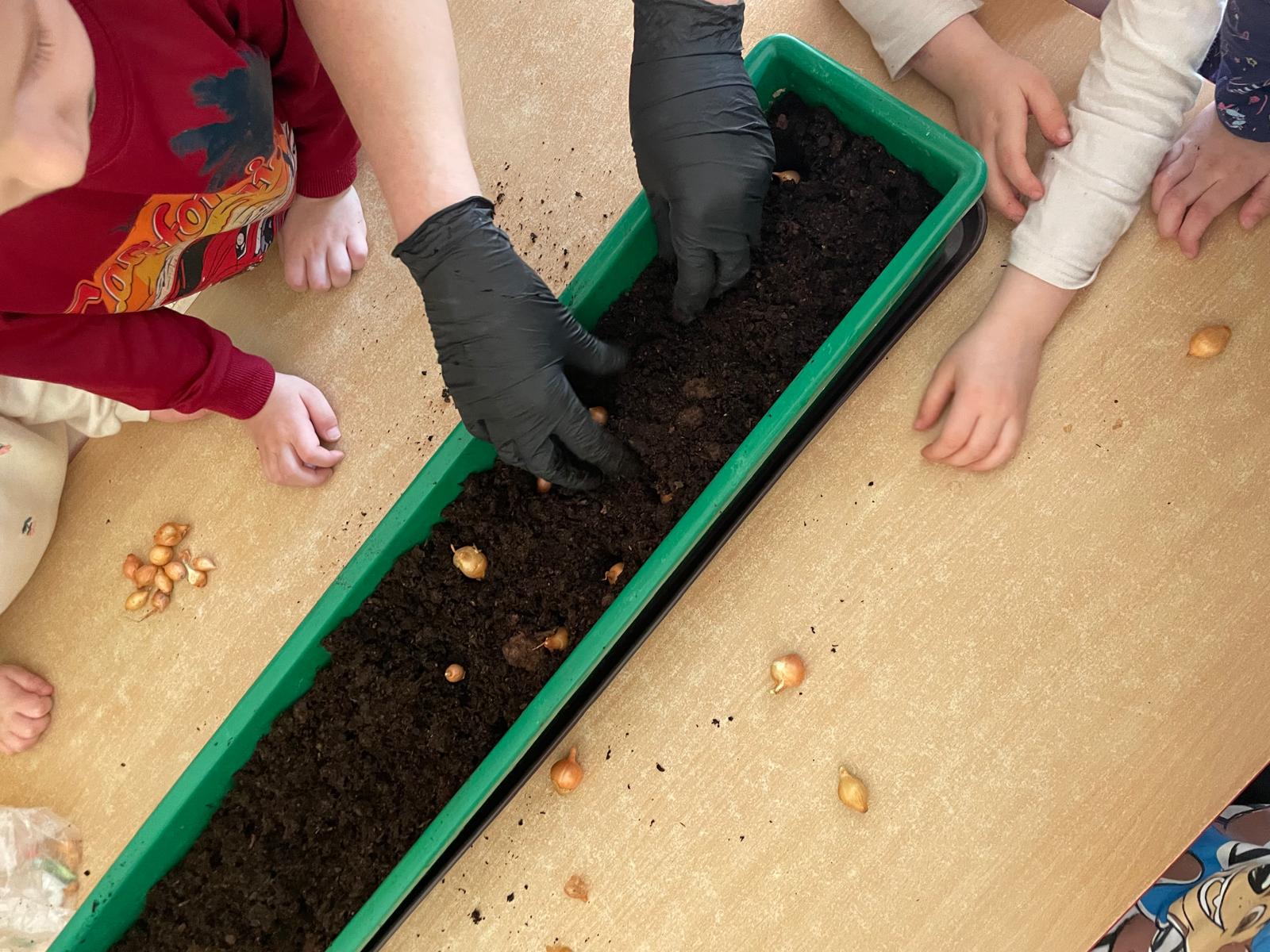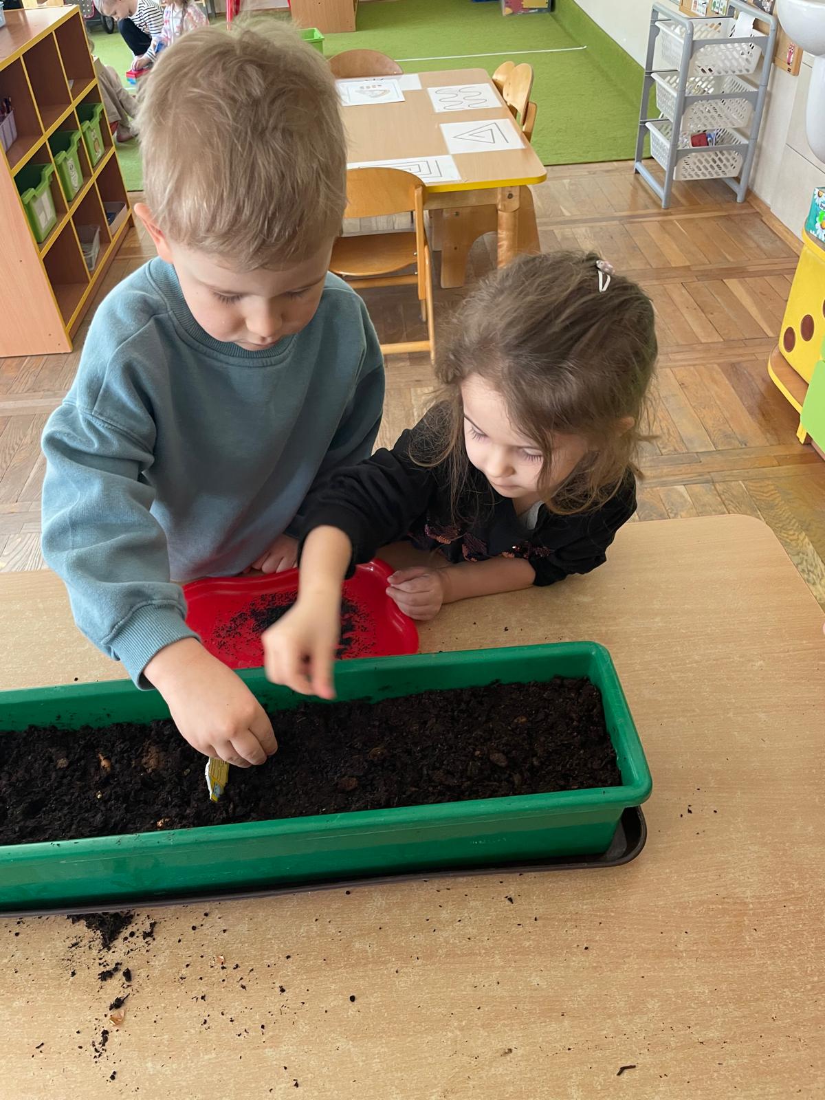 W naszej grupie „Sowy” postanowiliśmy stworzyć mały, wiosenny ogródek, który nie tylko ozdobi przestrzeń, ale i dostarczy nam zdrowych, świeżych produktów do codziennego spożycia. Wspólnie zasadziliśmy kiełki, szczypiorek oraz cebulkę, a do tego dodaliśmy kolorowe bratki, które wprowadziły do naszej sali mnóstwo uroku i radości.