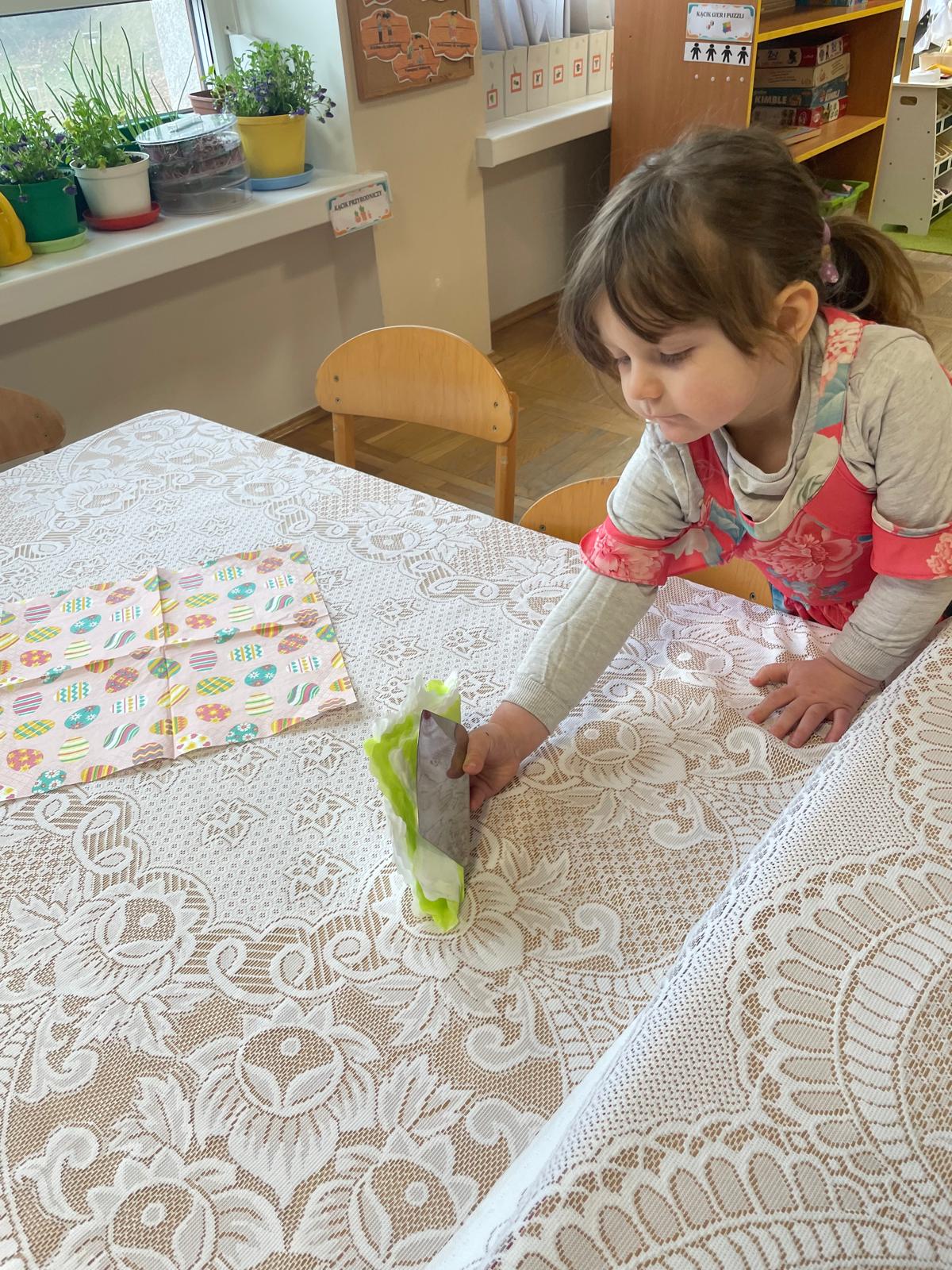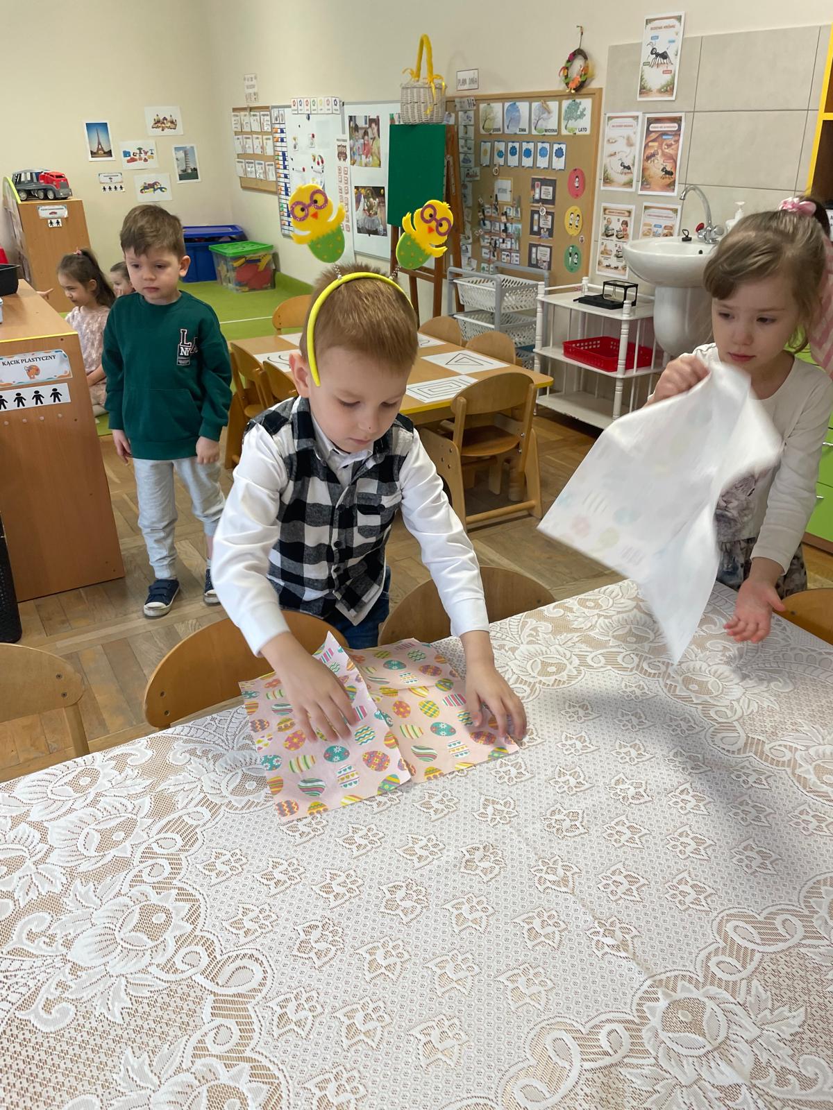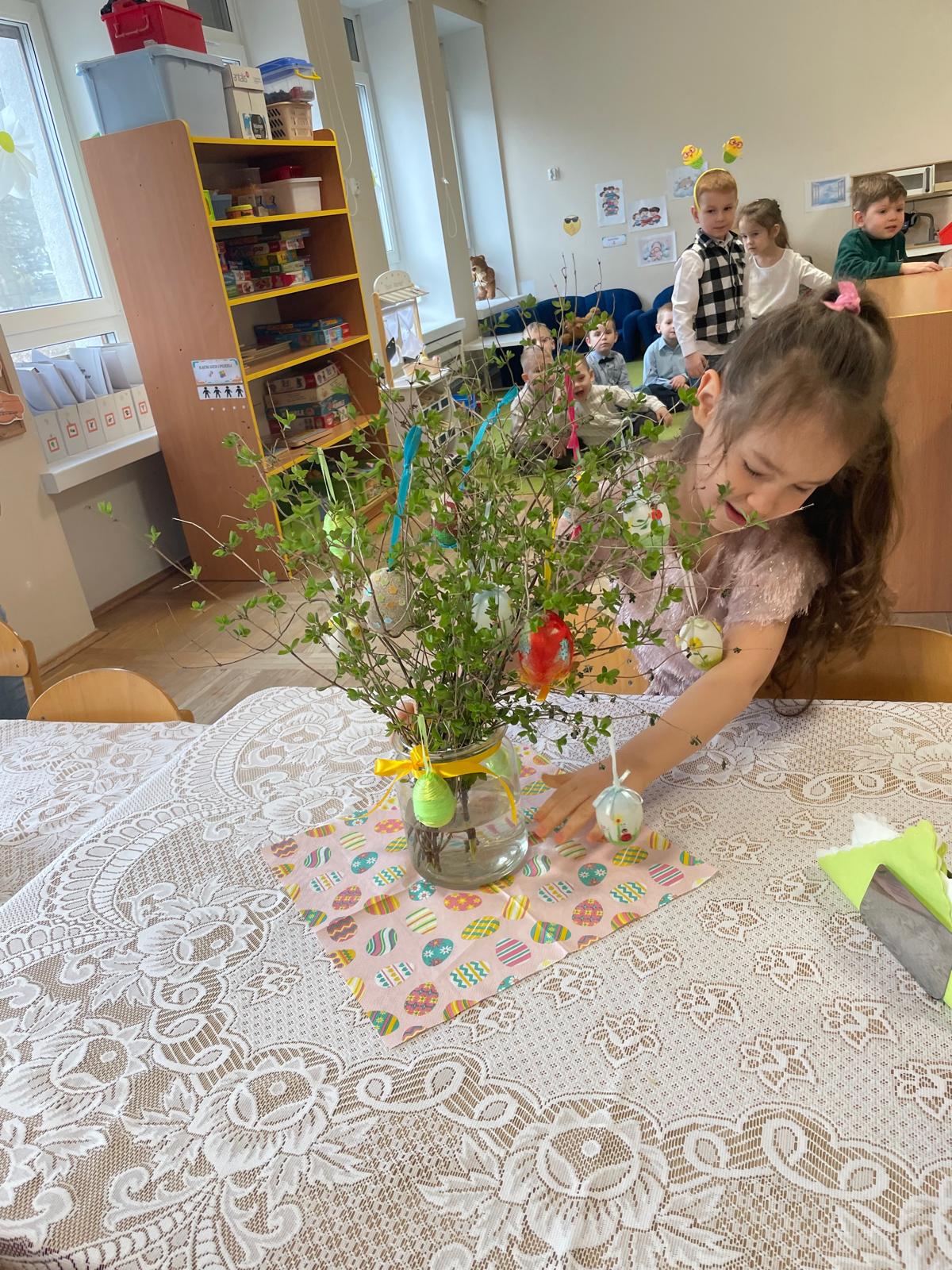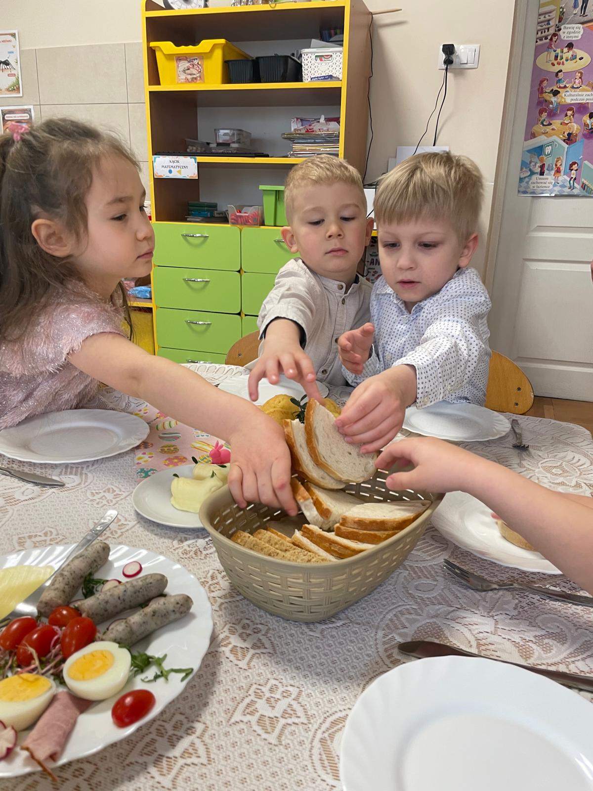 Dzieci wspólnie przygotowały wielkanocny stół, ucząc się nakrywania, porządku i zasad zachowania podczas posiłku. Następnie z apetytem spróbowały świątecznych potraw i dzieliły się swoimi wrażeniami.