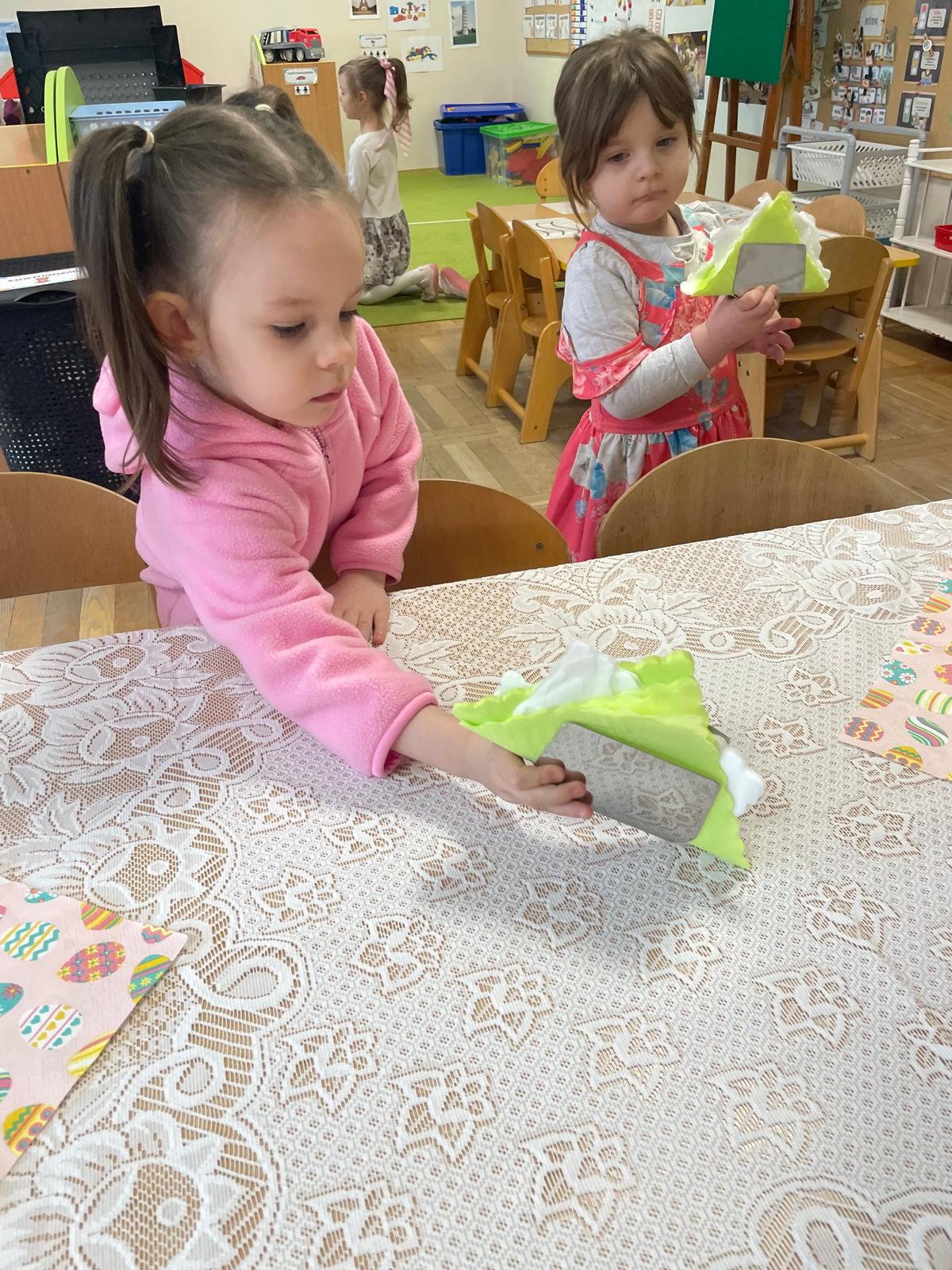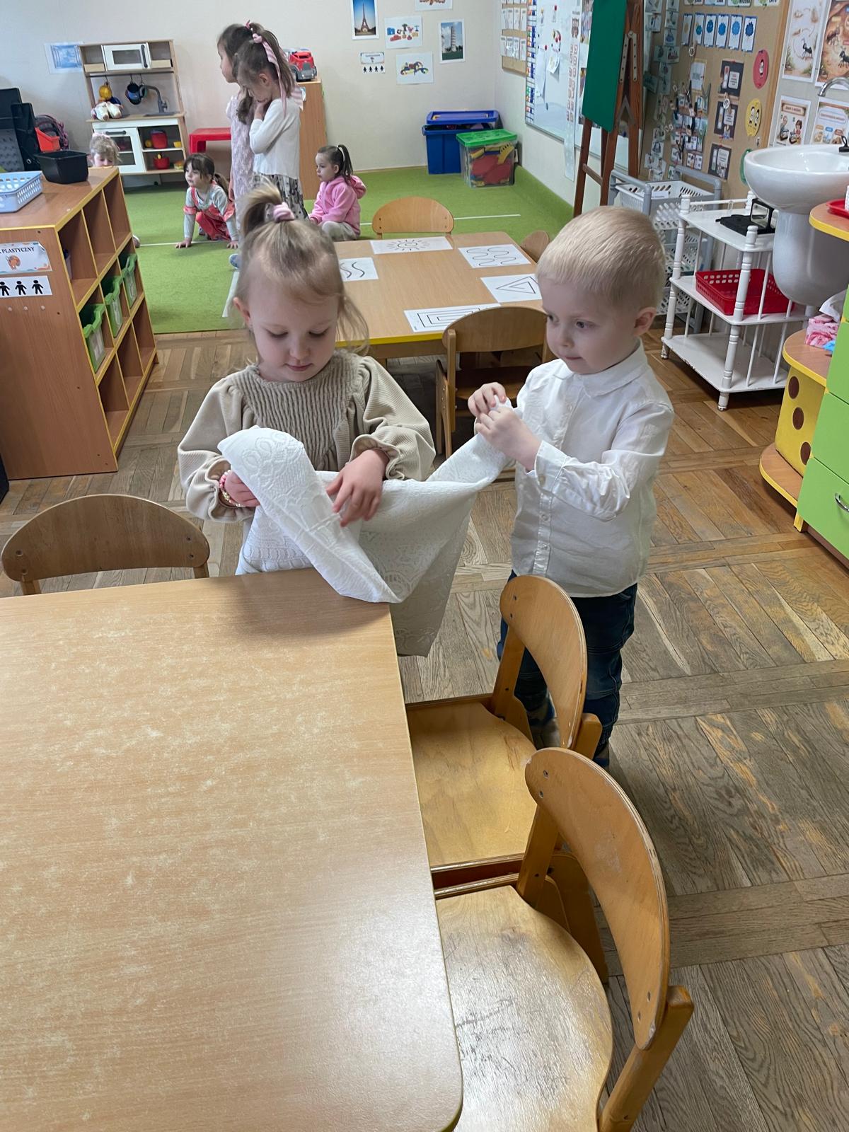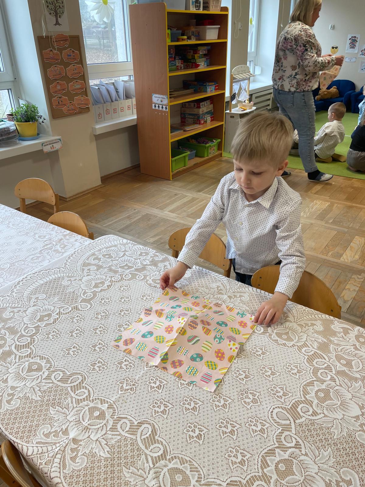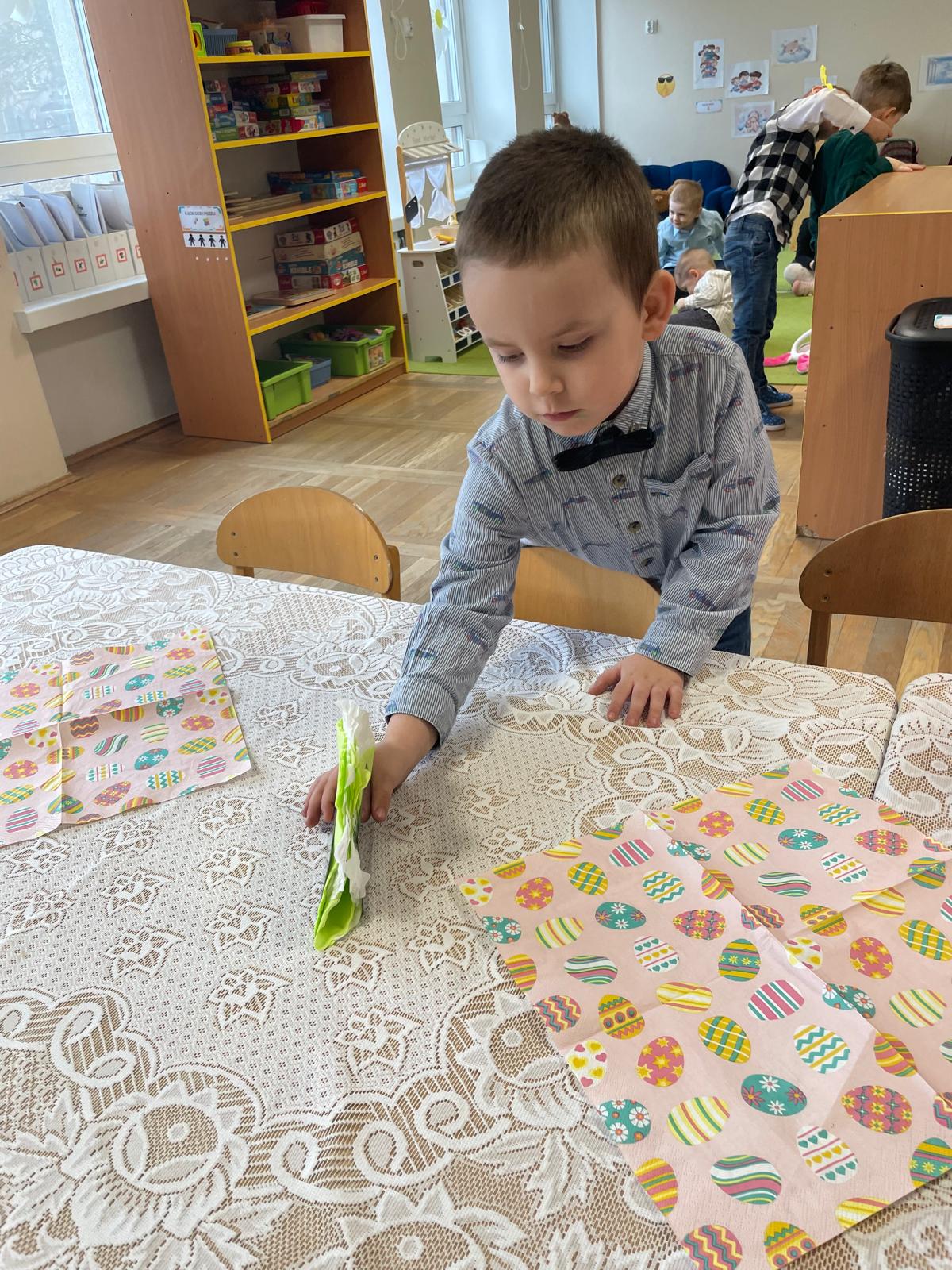 Dzieci wspólnie przygotowały wielkanocny stół, ucząc się nakrywania, porządku i zasad zachowania podczas posiłku. Następnie z apetytem spróbowały świątecznych potraw i dzieliły się swoimi wrażeniami.