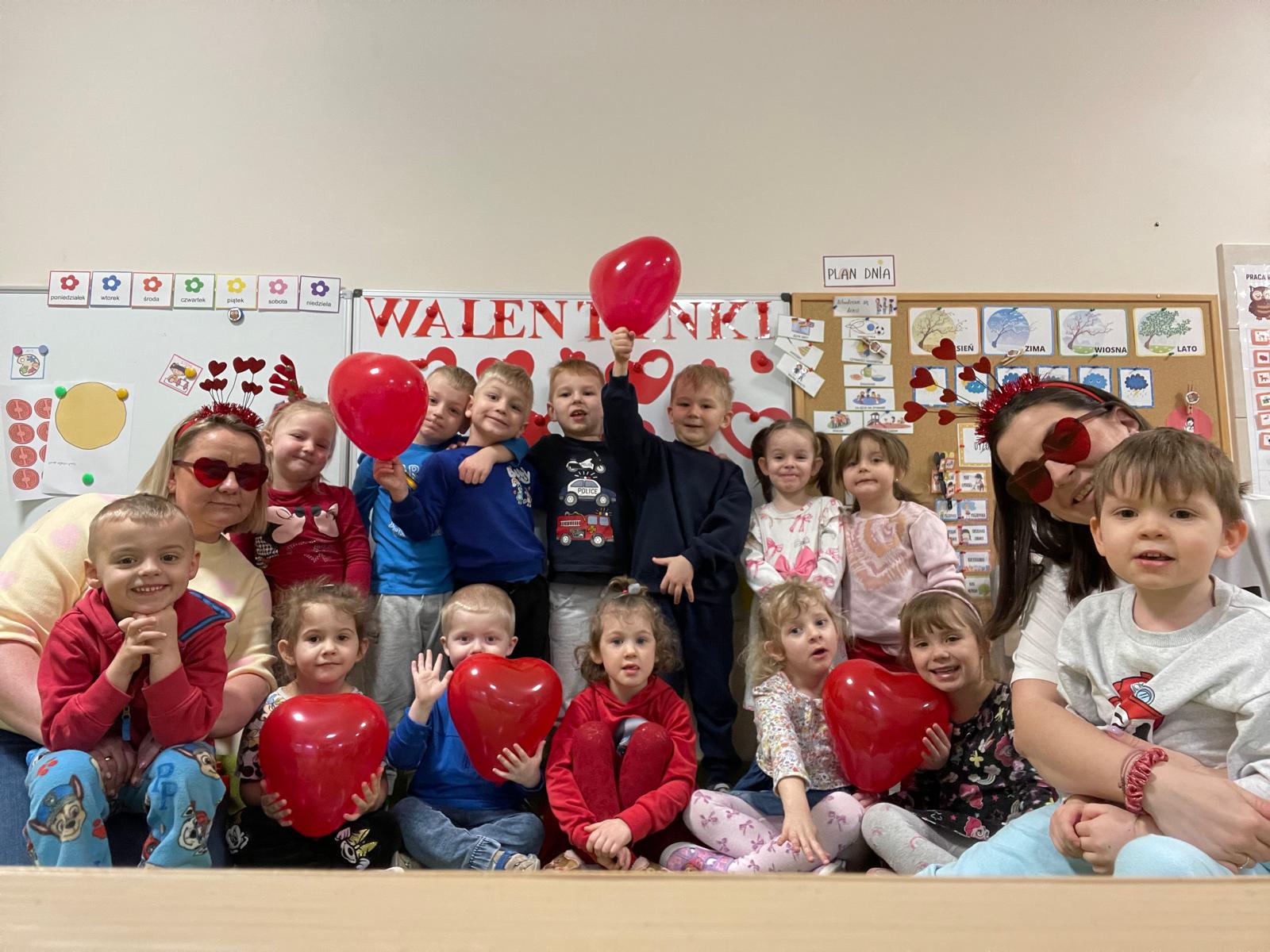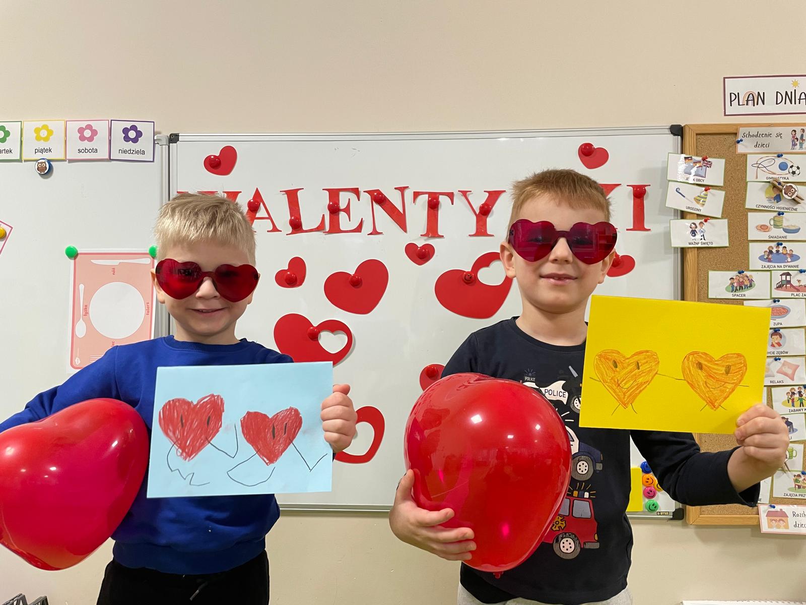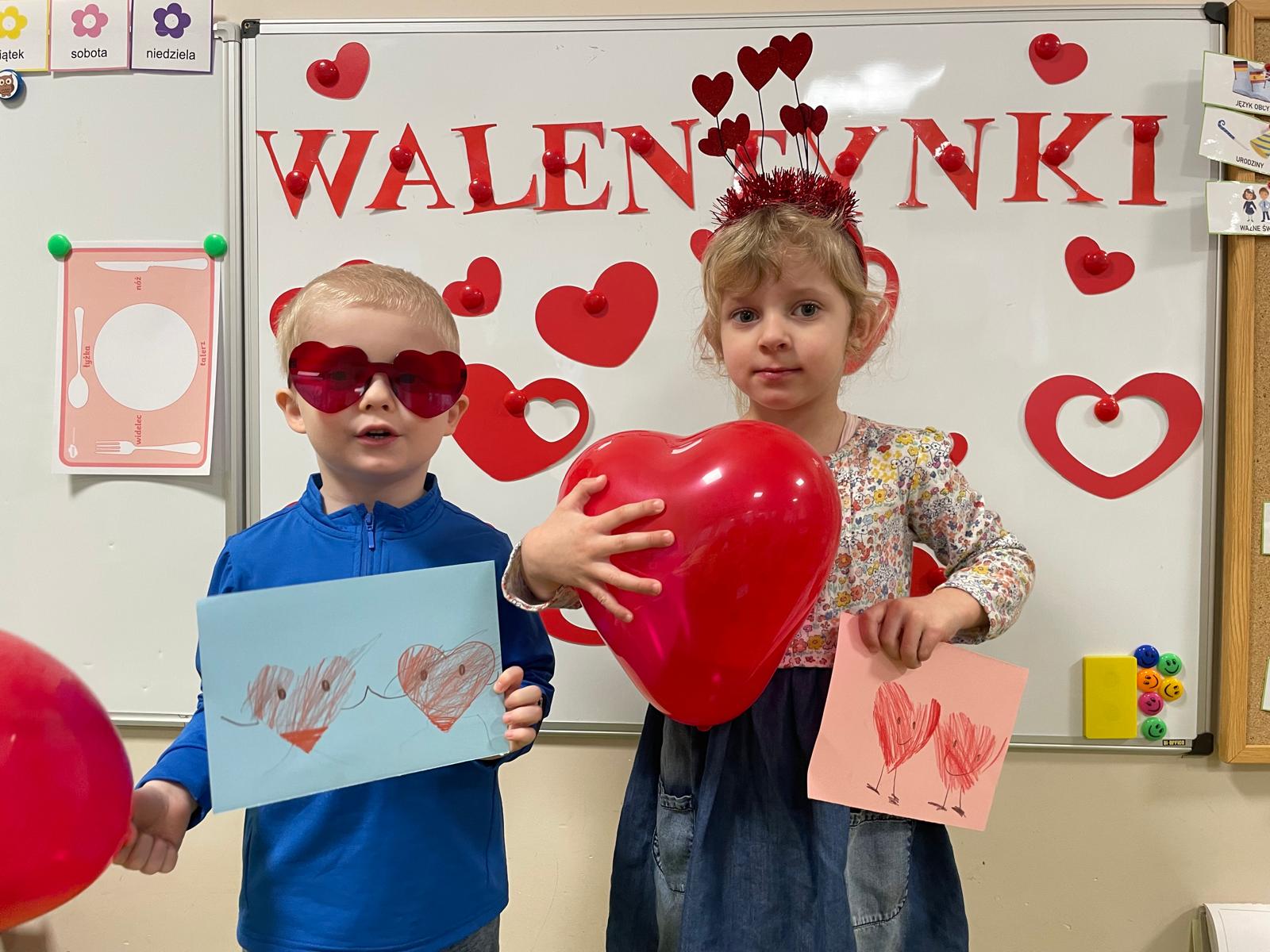 Dzieci dowiedziały się, że Walentynki to nie tylko święto zakochanych, ale również dzień, w którym możemy powiedzieć coś miłego kolegom, podziękować bliskim oraz sprawić komuś radość drobnym gestem. Podczas zajęć rozmawialiśmy o przyjaźni,dzieci uczestniczyły w zabawach integracyjnych oraz przygotowywały walentynkowe kartki.