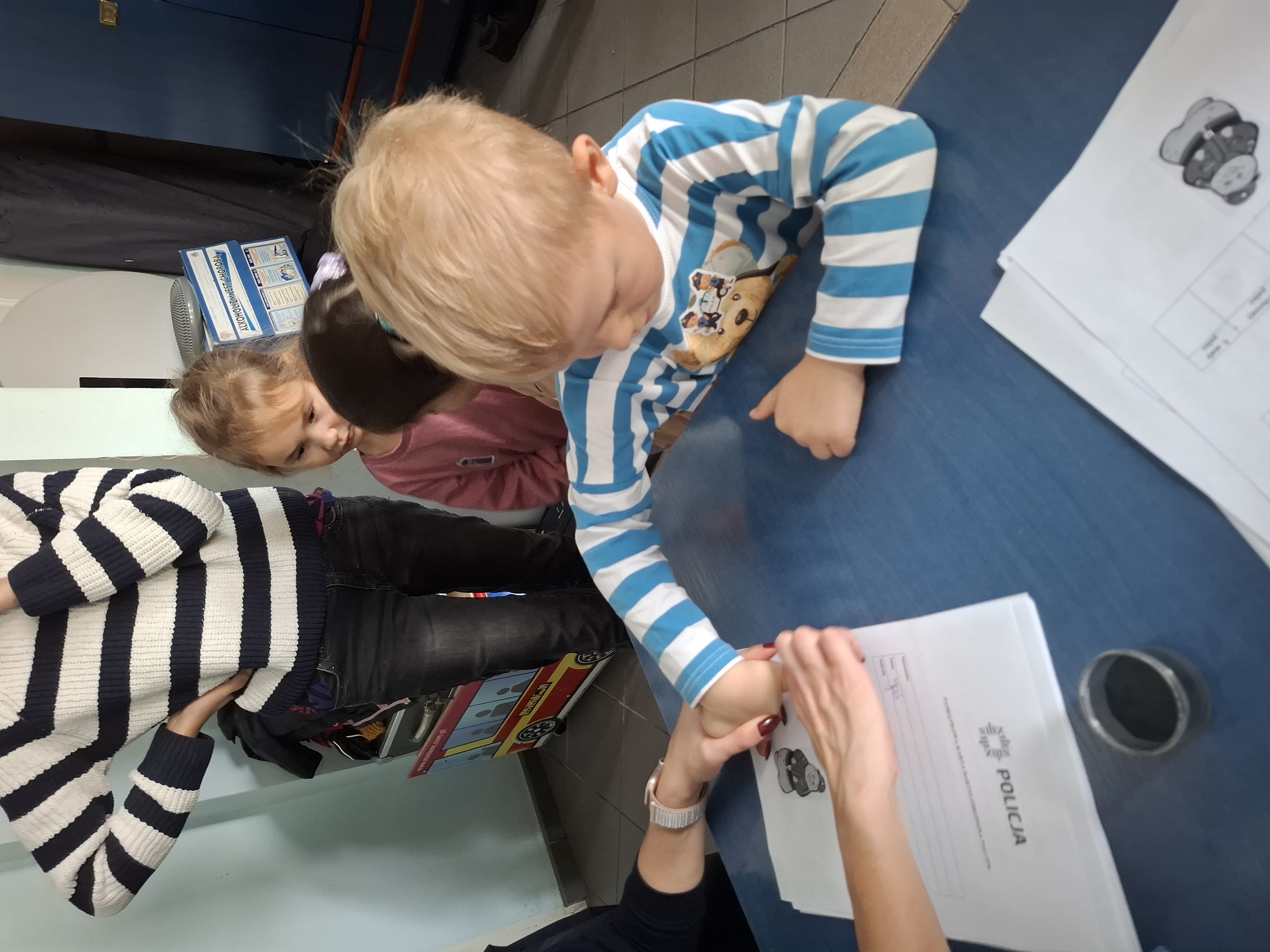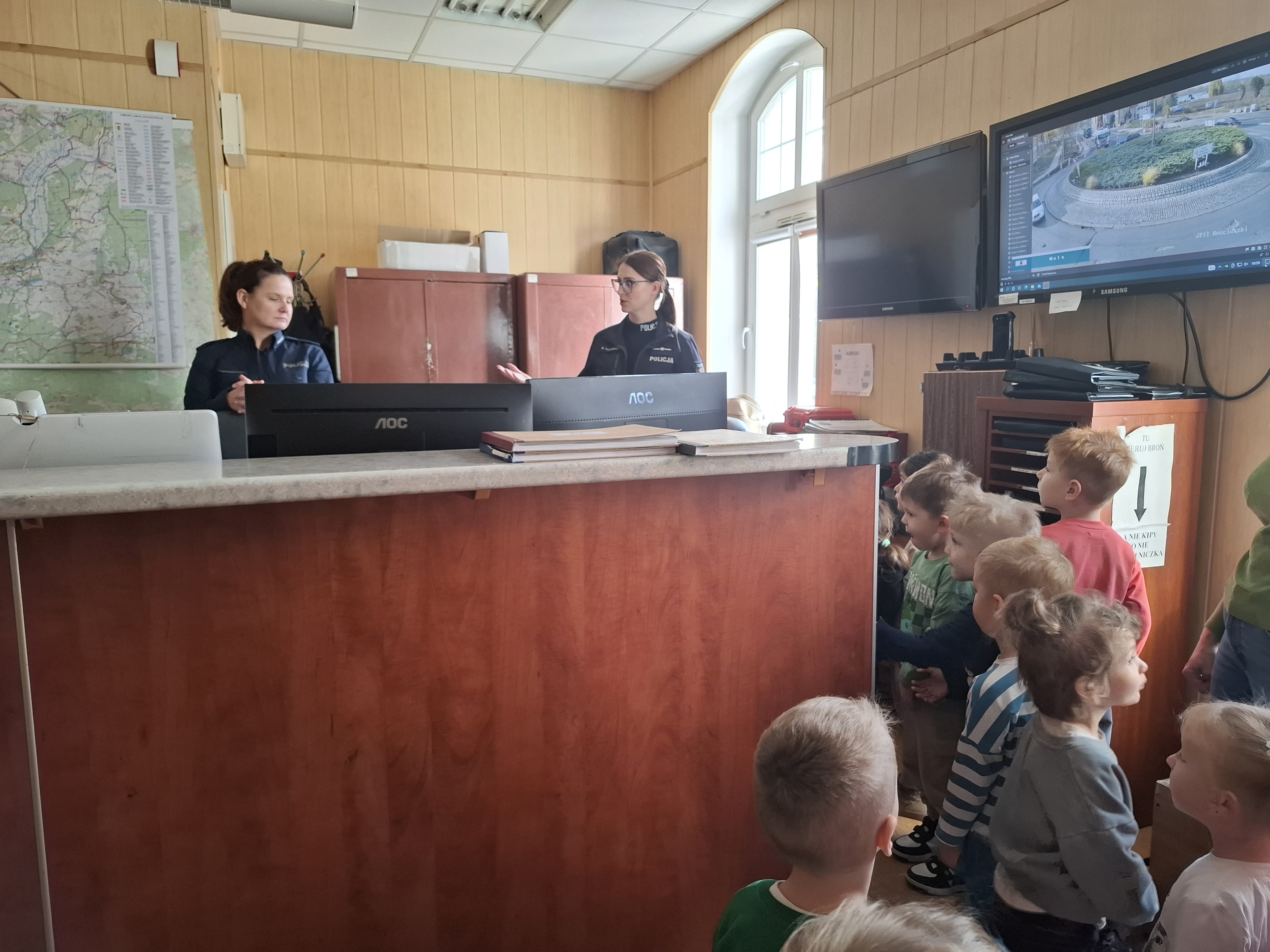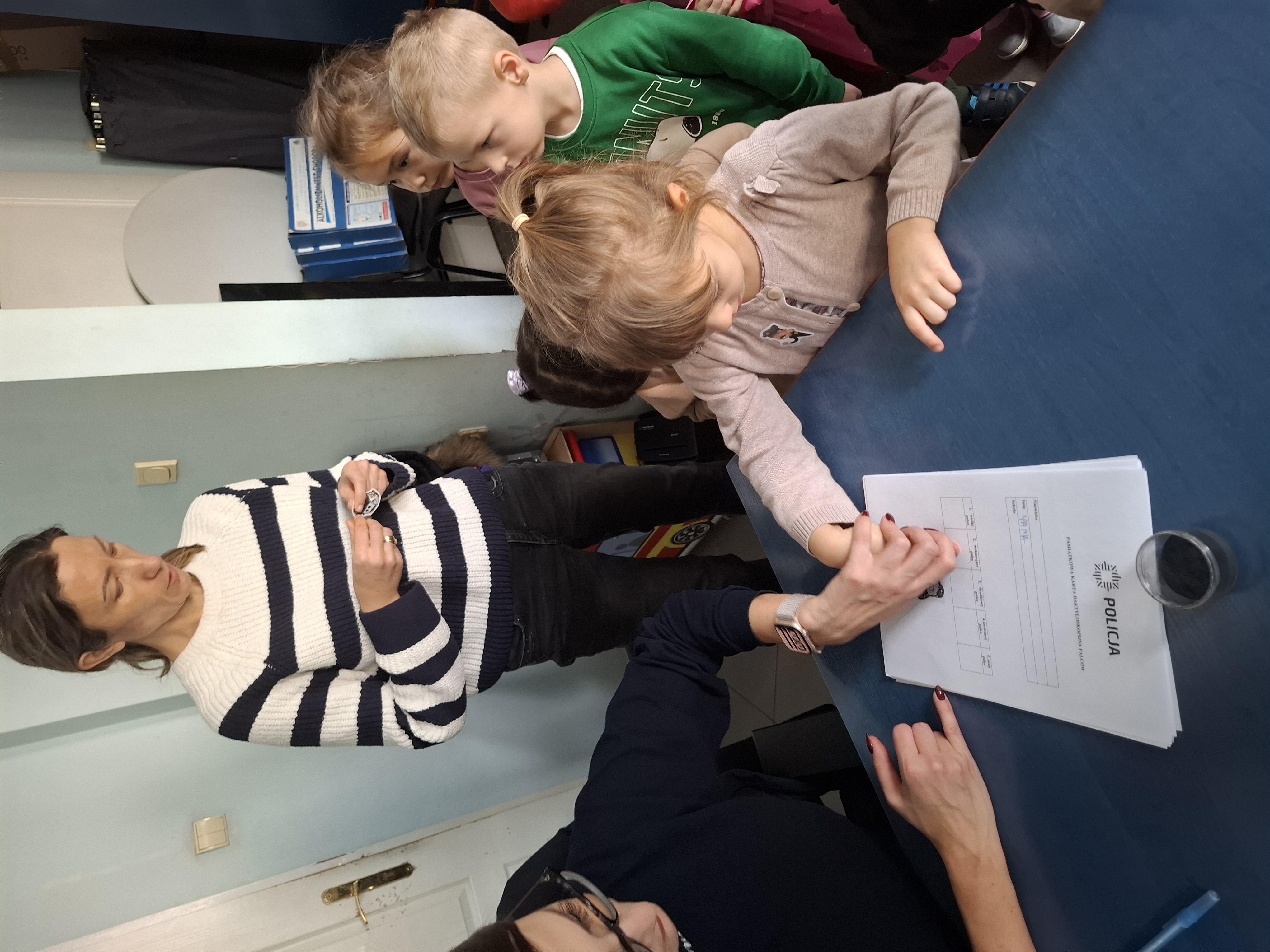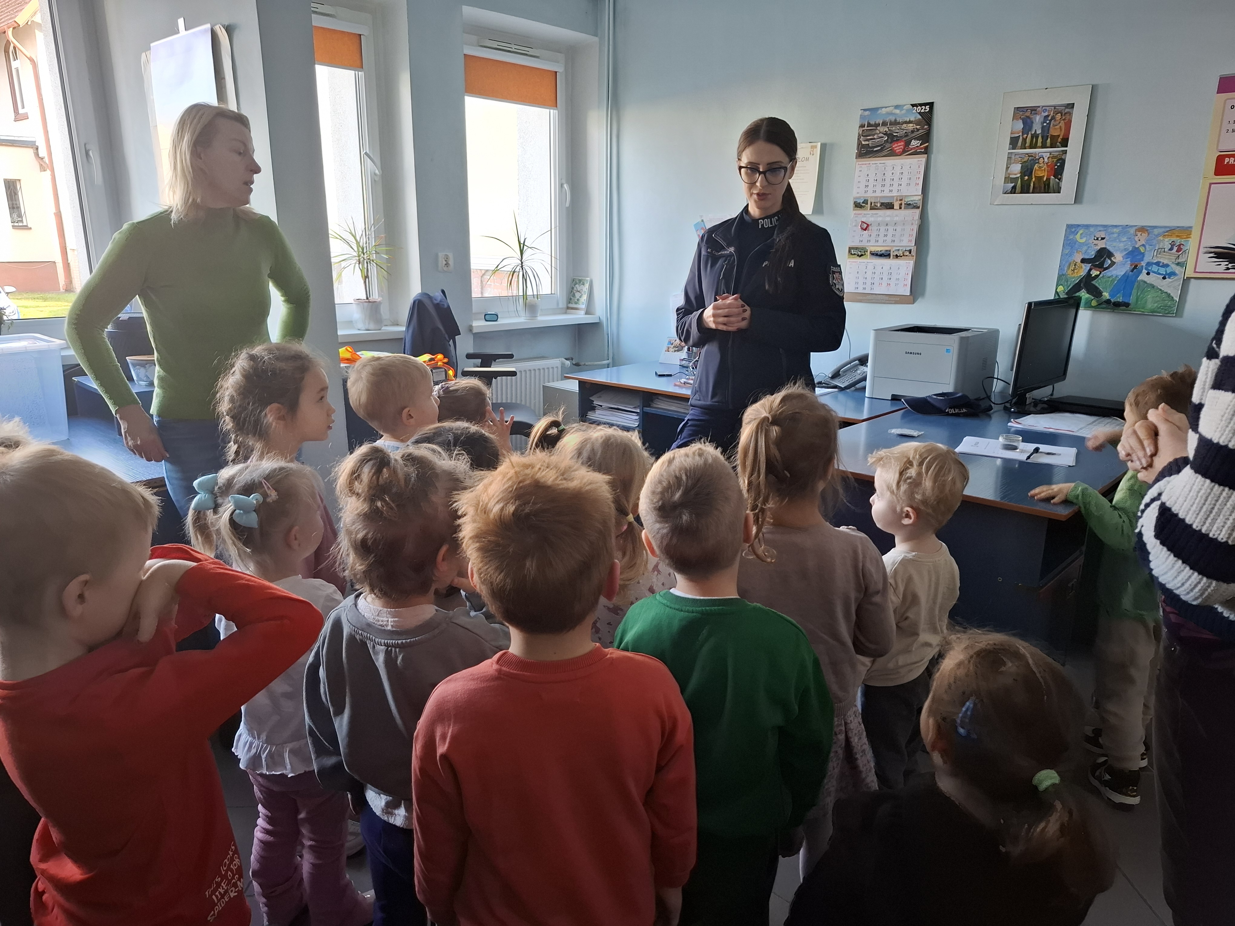Dzieci odwiedziły komisariat policji, gdzie miały okazję zobaczyć z bliska, jak wygląda praca funkcjonariuszy i jak wygląda prawdziwe miejsce, w którym policjanci pełnią służbę.