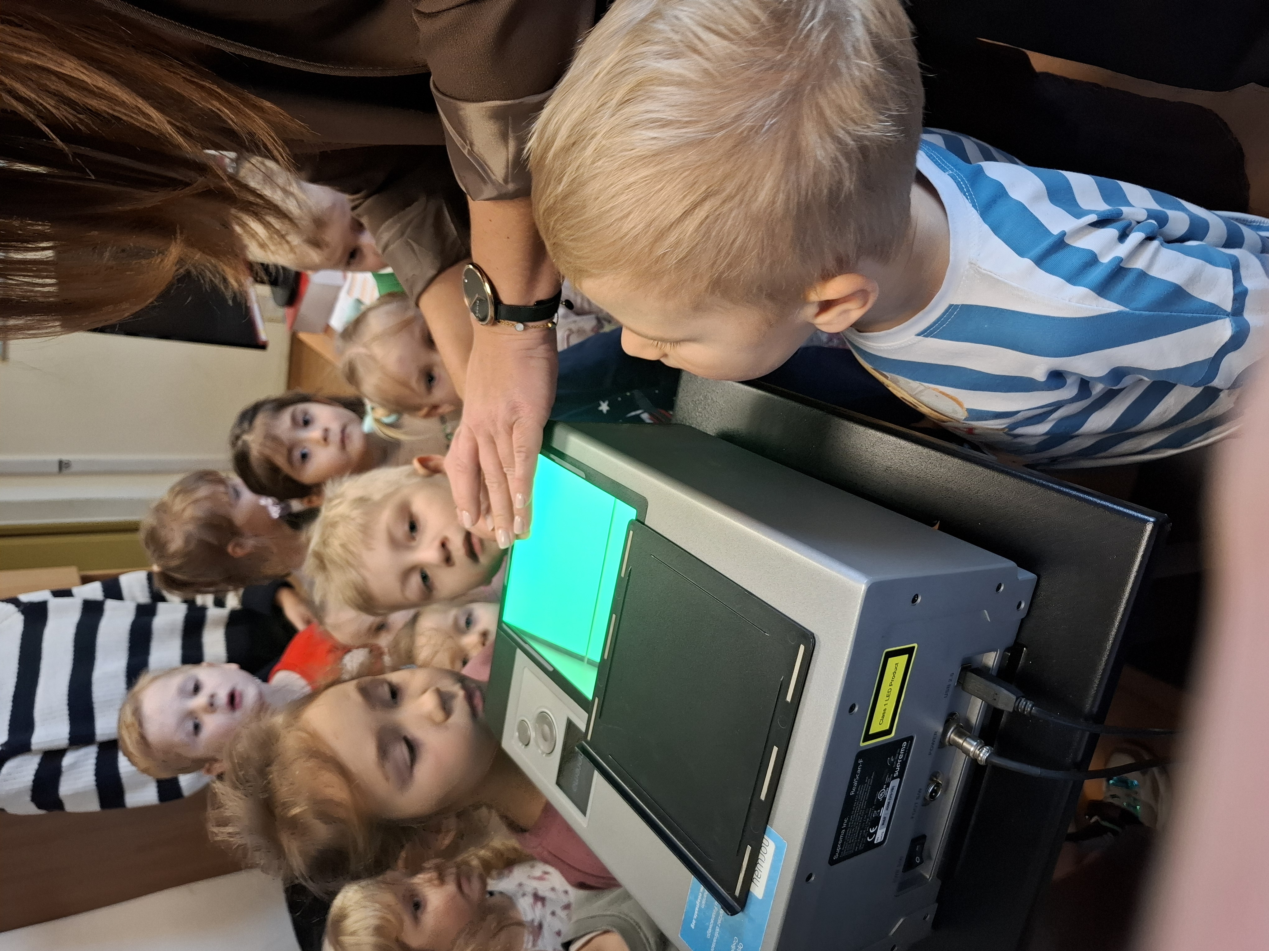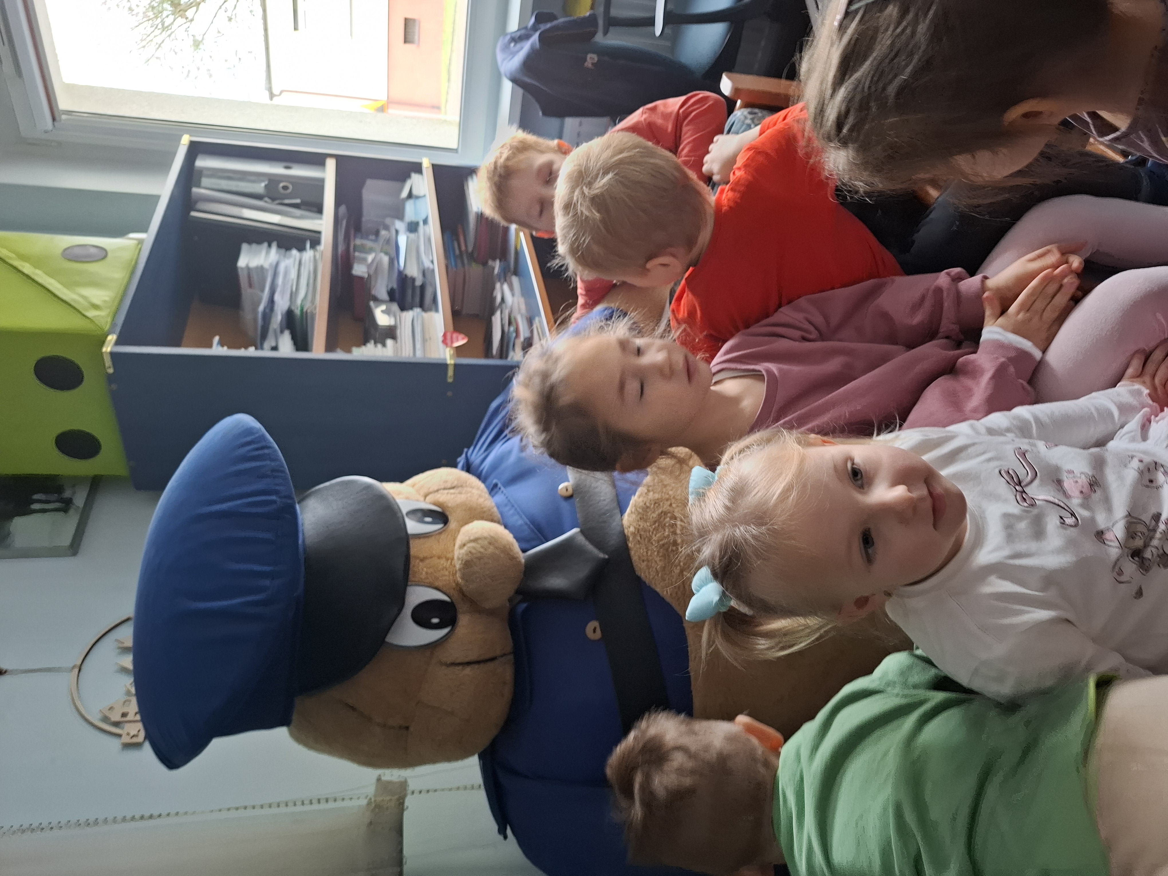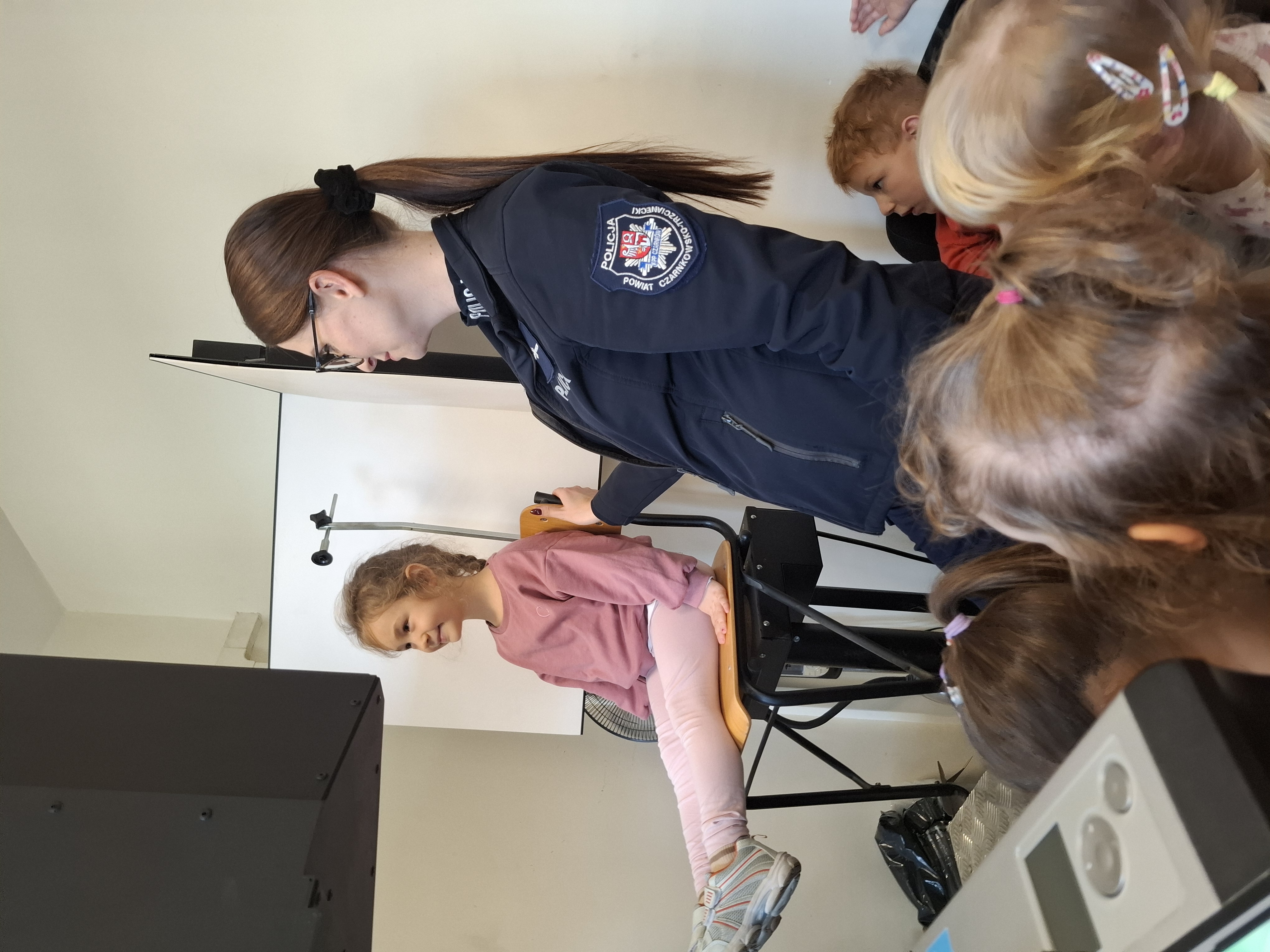 Podczas spotkania policjanci opowiedzieli dzieciom o swojej pracy, o tym kogo chronią i w jakich sytuacjach pomagają. Pokazali także część wyposażenia oraz pomieszczenia, z których korzystają na co dzień.